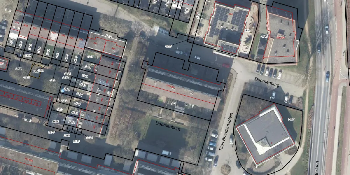Het perceel waarop Doornenburg 276 staat heeft een oppervlakte van 1250 m². Dit is een zeer groot perceel. De perceeloppervlakte wordt geregistreerd door het Kadaster. Gedetailleerde informatie over de maten van dit perceel kunt u vinden in het rapport Kadastrale kaart met maatvoering van Doornenburg 276.