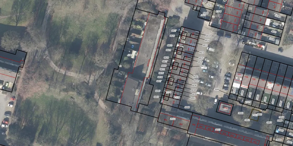 Het perceel waarop Doornenburg 510 staat heeft een oppervlakte van 1625 m². Dit is een zeer groot perceel. De perceeloppervlakte wordt geregistreerd door het Kadaster. Gedetailleerde informatie over de maten van dit perceel kunt u vinden in het rapport Kadastrale kaart met maatvoering van Doornenburg 510.