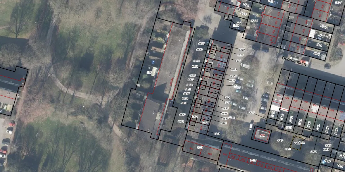 Het perceel waarop Doornenburg 512 staat heeft een oppervlakte van 1625 m². Dit is een zeer groot perceel. De perceeloppervlakte wordt geregistreerd door het Kadaster. Gedetailleerde informatie over de maten van dit perceel kunt u vinden in het rapport Kadastrale kaart met maatvoering van Doornenburg 512.