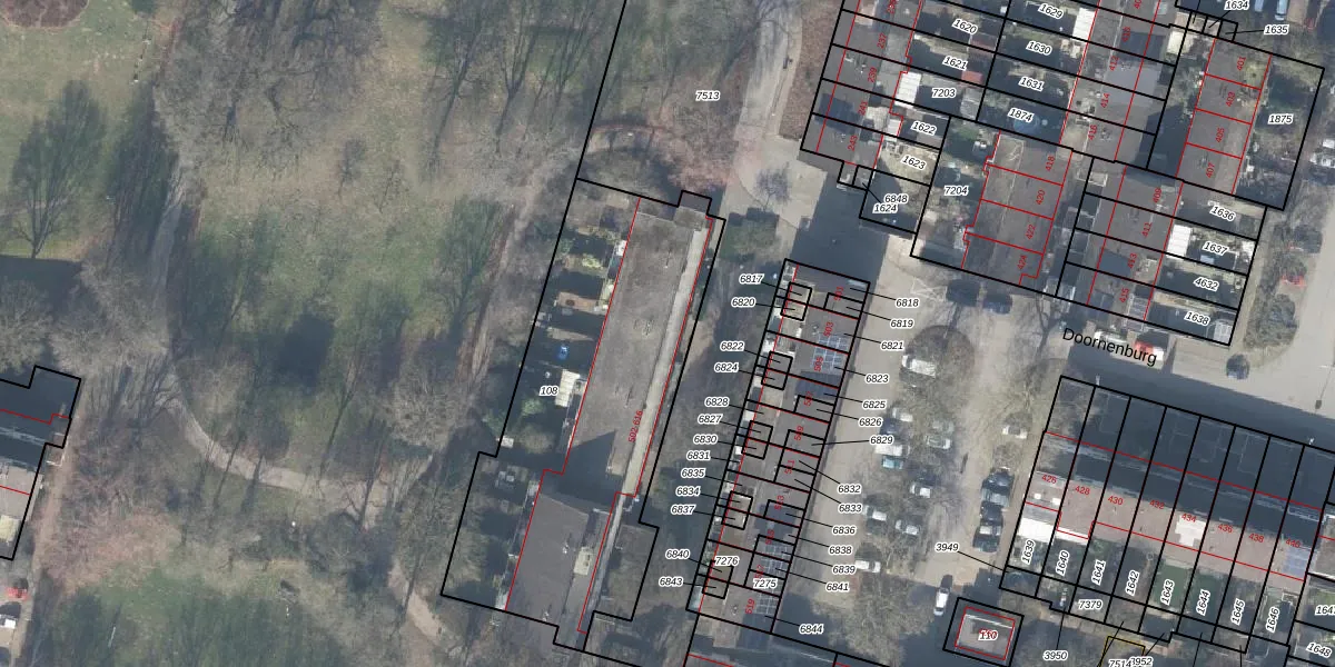 Het perceel waarop Doornenburg 518 staat heeft een oppervlakte van 1625 m². Dit is een zeer groot perceel. De perceeloppervlakte wordt geregistreerd door het Kadaster. Gedetailleerde informatie over de maten van dit perceel kunt u vinden in het rapport Kadastrale kaart met maatvoering van Doornenburg 518.
