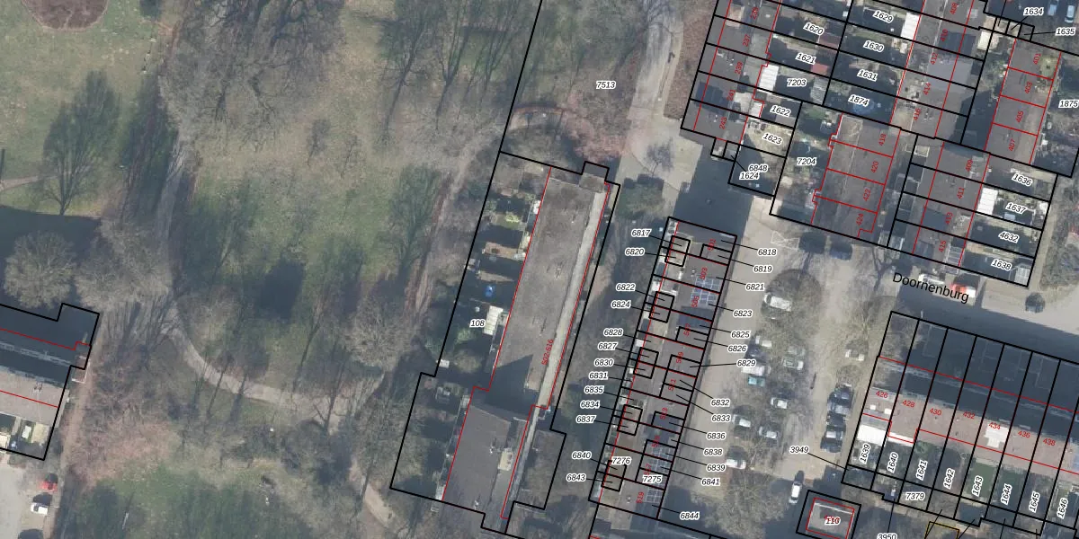 Het perceel waarop Doornenburg 614 staat heeft een oppervlakte van 1625 m². Dit is een zeer groot perceel. De perceeloppervlakte wordt geregistreerd door het Kadaster. Gedetailleerde informatie over de maten van dit perceel kunt u vinden in het rapport Kadastrale kaart met maatvoering van Doornenburg 614.