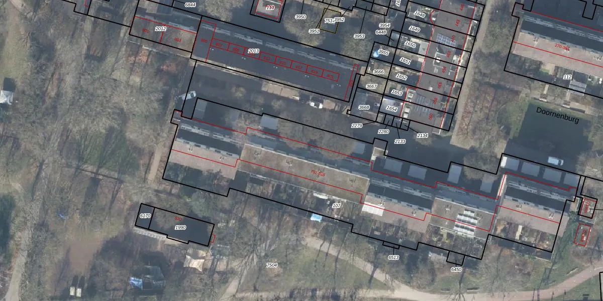 Het perceel waarop Doornenburg 716 staat heeft een oppervlakte van 3680 m². Dit is een zeer groot perceel. De perceeloppervlakte wordt geregistreerd door het Kadaster. Gedetailleerde informatie over de maten van dit perceel kunt u vinden in het rapport Kadastrale kaart met maatvoering van Doornenburg 716.