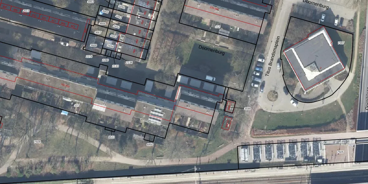 Het perceel waarop Doornenburg 742 staat heeft een oppervlakte van 3680 m². Dit is een zeer groot perceel. De perceeloppervlakte wordt geregistreerd door het Kadaster. Gedetailleerde informatie over de maten van dit perceel kunt u vinden in het rapport Kadastrale kaart met maatvoering van Doornenburg 742.