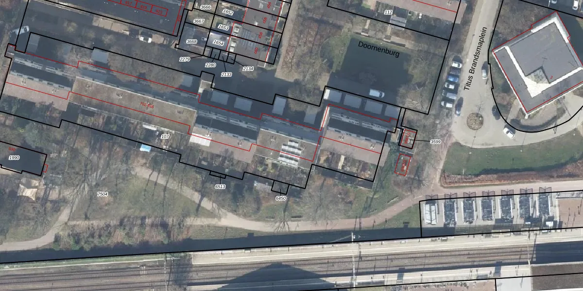 Het perceel waarop Doornenburg 828 staat heeft een oppervlakte van 3680 m². Dit is een zeer groot perceel. De perceeloppervlakte wordt geregistreerd door het Kadaster. Gedetailleerde informatie over de maten van dit perceel kunt u vinden in het rapport Kadastrale kaart met maatvoering van Doornenburg 828.