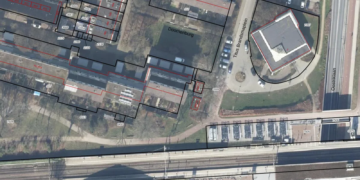Het perceel waarop Doornenburg 836 staat heeft een oppervlakte van 3680 m². Dit is een zeer groot perceel. De perceeloppervlakte wordt geregistreerd door het Kadaster. Gedetailleerde informatie over de maten van dit perceel kunt u vinden in het rapport Kadastrale kaart met maatvoering van Doornenburg 836.