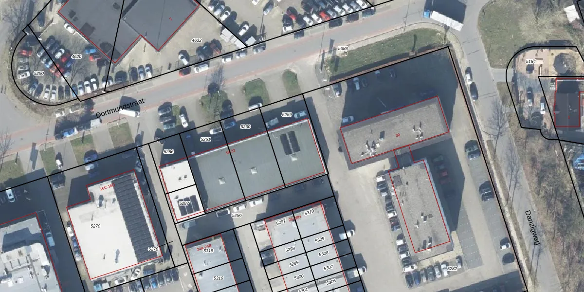 Het perceel waarop Dortmundstraat 22 staat heeft een oppervlakte van 447 m². Dit is een groot perceel. De perceeloppervlakte wordt geregistreerd door het Kadaster. Gedetailleerde informatie over de maten van dit perceel kunt u vinden in het rapport Kadastrale kaart met maatvoering van Dortmundstraat 22.