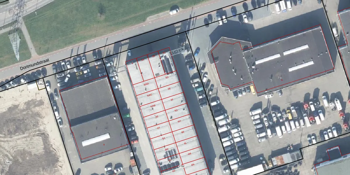 Het perceel waarop Dortmundstraat 6-E staat heeft een oppervlakte van 4500 m². Dit is een zeer groot perceel. De perceeloppervlakte wordt geregistreerd door het Kadaster. Gedetailleerde informatie over de maten van dit perceel kunt u vinden in het rapport Kadastrale kaart met maatvoering van Dortmundstraat 6-E.