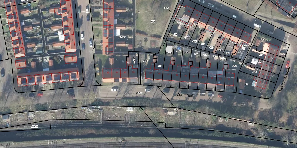 Gebruik de zoekbalk of klik op een perceel voor informatie over de adressen binnen dit perceel.