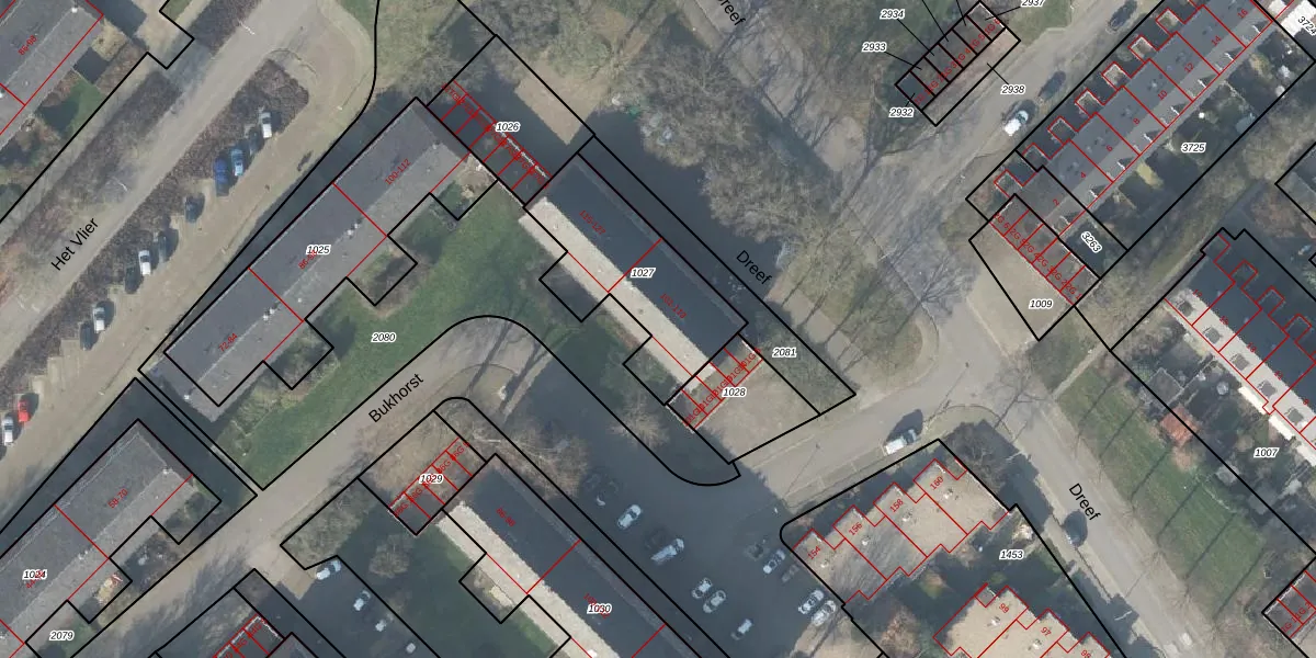 Het perceel waarop Dreef 107 staat heeft een oppervlakte van 532 m². Dit is een groot perceel. De perceeloppervlakte wordt geregistreerd door het Kadaster. Gedetailleerde informatie over de maten van dit perceel kunt u vinden in het rapport Kadastrale kaart met maatvoering van Dreef 107.