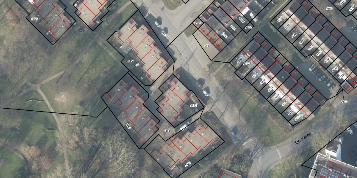Het perceel waarop Dreef 25 staat heeft een oppervlakte van 455 m². Dit is een groot perceel. De perceeloppervlakte wordt geregistreerd door het Kadaster. Gedetailleerde informatie over de maten van dit perceel kunt u vinden in het rapport Kadastrale kaart met maatvoering van Dreef 25.