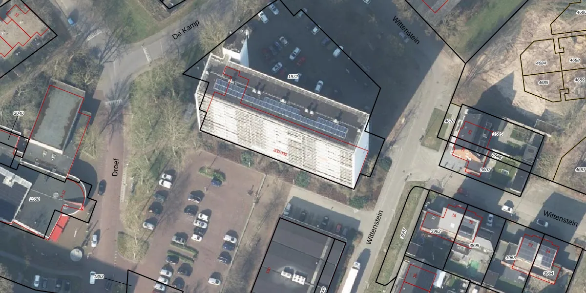 Het perceel waarop Dreef 320 staat heeft een oppervlakte van 2649 m². Dit is een zeer groot perceel. De perceeloppervlakte wordt geregistreerd door het Kadaster. Gedetailleerde informatie over de maten van dit perceel kunt u vinden in het rapport Kadastrale kaart met maatvoering van Dreef 320.