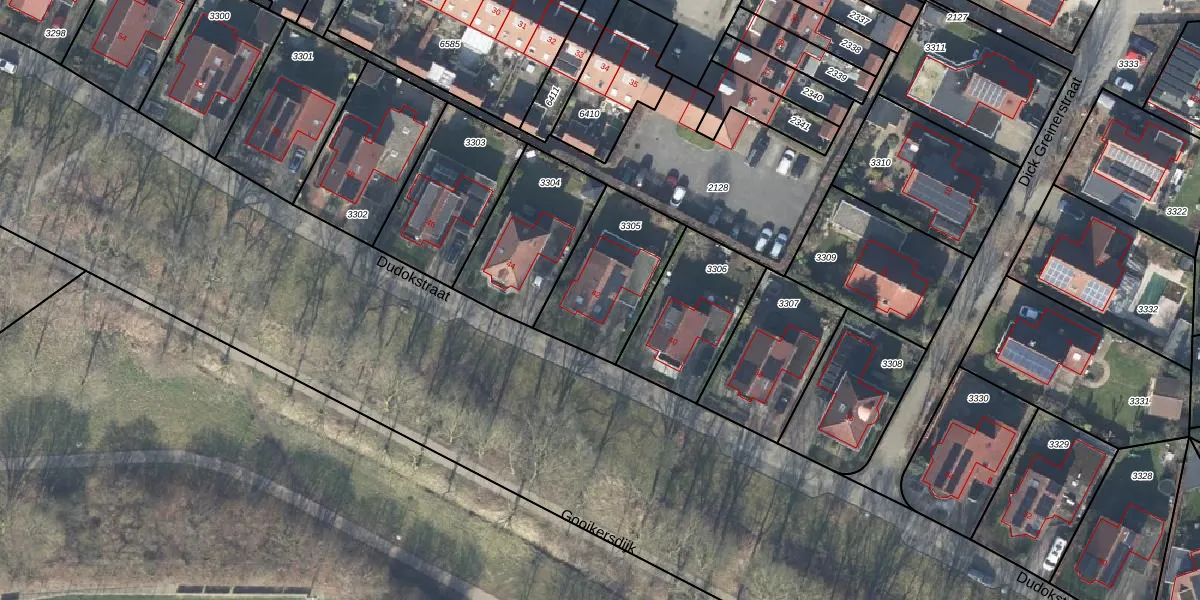 Het perceel waarop Dudokstraat 42 staat heeft een oppervlakte van 397 m². Dit is een groot perceel. De perceeloppervlakte wordt geregistreerd door het Kadaster. Gedetailleerde informatie over de maten van dit perceel kunt u vinden in het rapport Kadastrale kaart met maatvoering van Dudokstraat 42.