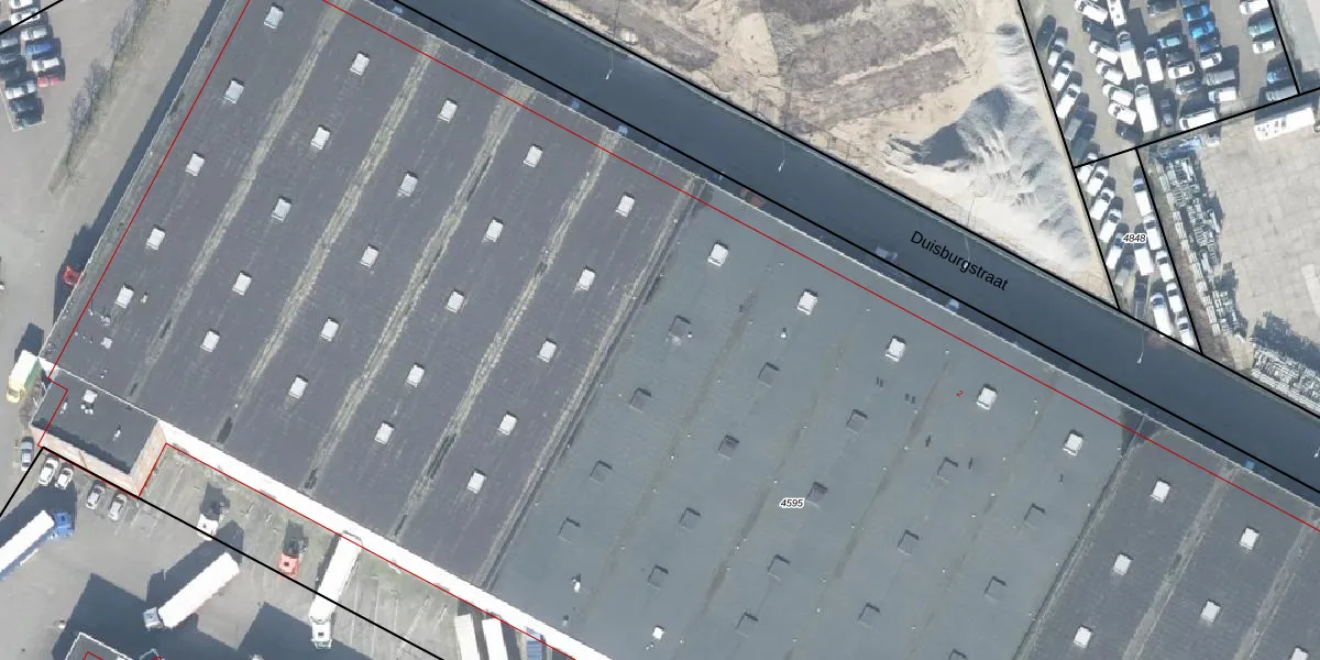 Het perceel waarop Duisburgstraat 4 staat heeft een oppervlakte van 2,2 ha. Dit is een zeer groot perceel. De perceeloppervlakte wordt geregistreerd door het Kadaster. Gedetailleerde informatie over de maten van dit perceel kunt u vinden in het rapport Kadastrale kaart met maatvoering van Duisburgstraat 4.