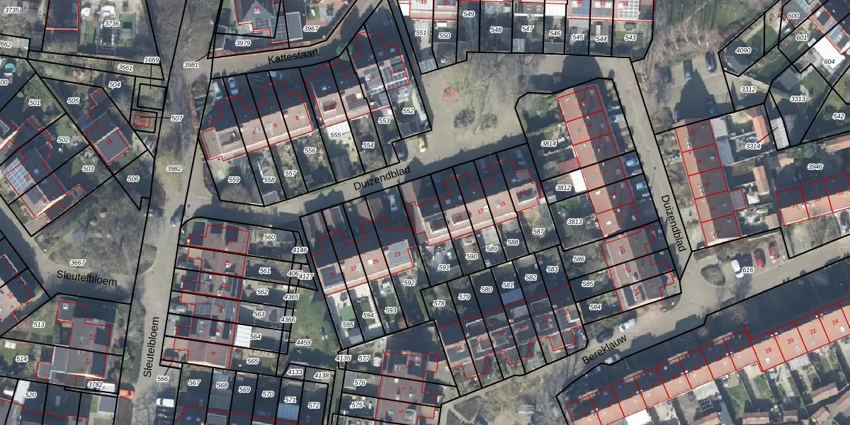 Het perceel waarop Duizendblad 21 staat heeft een oppervlakte van 207 m². Dit is een middelgroot perceel. De perceeloppervlakte wordt geregistreerd door het Kadaster. Gedetailleerde informatie over de maten van dit perceel kunt u vinden in het rapport Kadastrale kaart met maatvoering van Duizendblad 21.