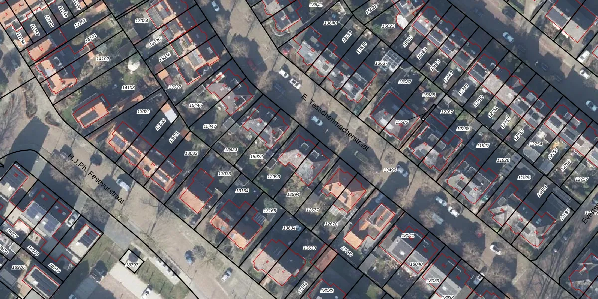 Het perceel waarop E. Tesschenmacherstraat 19 staat heeft een oppervlakte van 225 m². Dit is een middelgroot perceel. De perceeloppervlakte wordt geregistreerd door het Kadaster. Gedetailleerde informatie over de maten van dit perceel kunt u vinden in het rapport Kadastrale kaart met maatvoering van E. Tesschenmacherstraat 19.