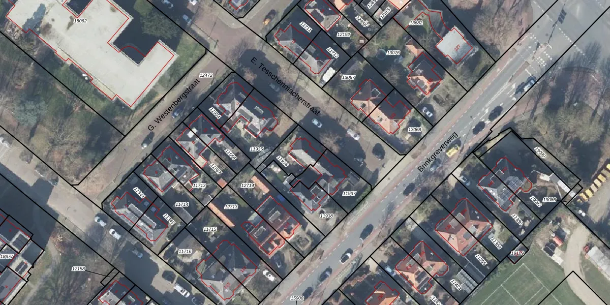 Gebruik de zoekbalk of klik op een perceel voor informatie over de adressen binnen dit perceel.