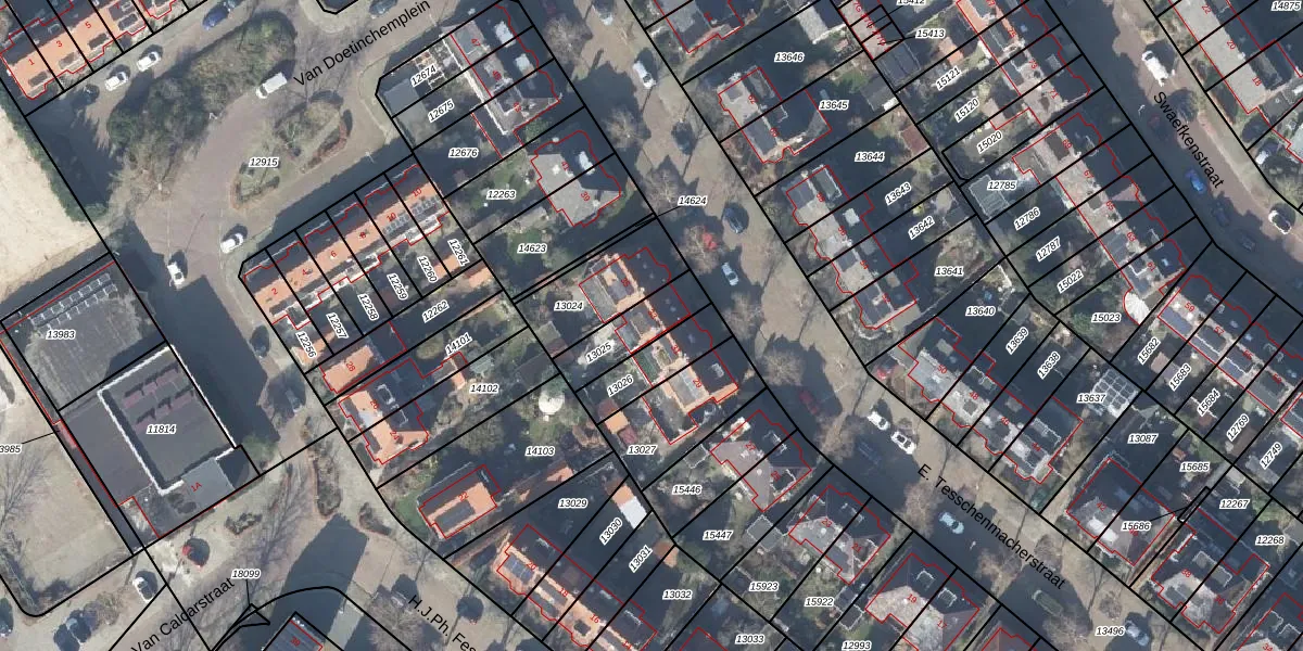 Gebruik de zoekbalk of klik op een perceel voor informatie over de adressen binnen dit perceel.
