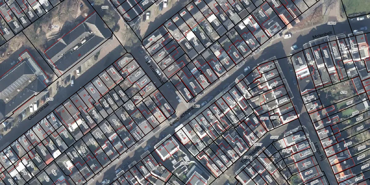 Het perceel waarop Eendrachtstraat 41 staat heeft een oppervlakte van 80 m². Dit is een klein perceel. De perceeloppervlakte wordt geregistreerd door het Kadaster. Gedetailleerde informatie over de maten van dit perceel kunt u vinden in het rapport Kadastrale kaart met maatvoering van Eendrachtstraat 41.