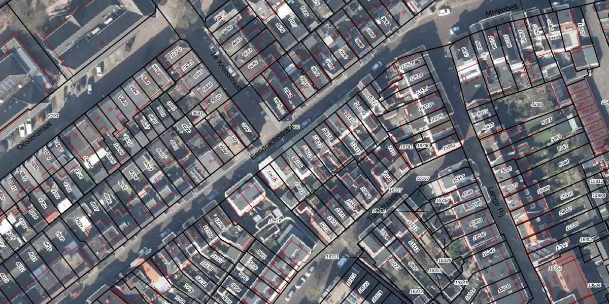 Het perceel waarop Eendrachtstraat 42 staat heeft een oppervlakte van 74 m². Dit is een klein perceel. De perceeloppervlakte wordt geregistreerd door het Kadaster. Gedetailleerde informatie over de maten van dit perceel kunt u vinden in het rapport Kadastrale kaart met maatvoering van Eendrachtstraat 42.