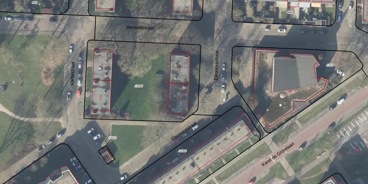 Het perceel waarop Eleonorastraat 15 staat heeft een oppervlakte van 2607 m². Dit is een zeer groot perceel. De perceeloppervlakte wordt geregistreerd door het Kadaster. Gedetailleerde informatie over de maten van dit perceel kunt u vinden in het rapport Kadastrale kaart met maatvoering van Eleonorastraat 15.