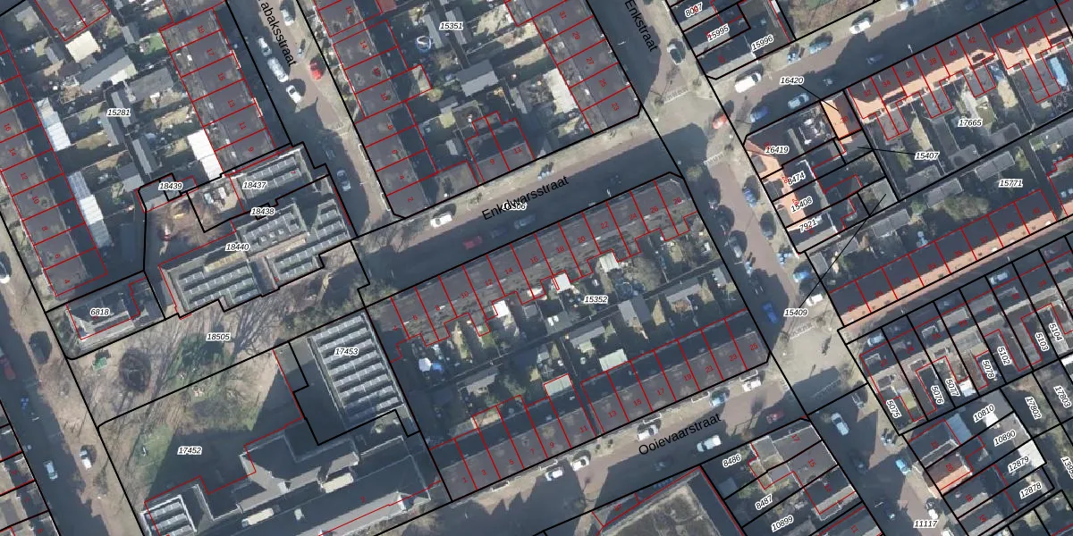 Het perceel waarop Enkdwarsstraat 16 staat heeft een oppervlakte van 2568 m². Dit is een zeer groot perceel. De perceeloppervlakte wordt geregistreerd door het Kadaster. Gedetailleerde informatie over de maten van dit perceel kunt u vinden in het rapport Kadastrale kaart met maatvoering van Enkdwarsstraat 16.