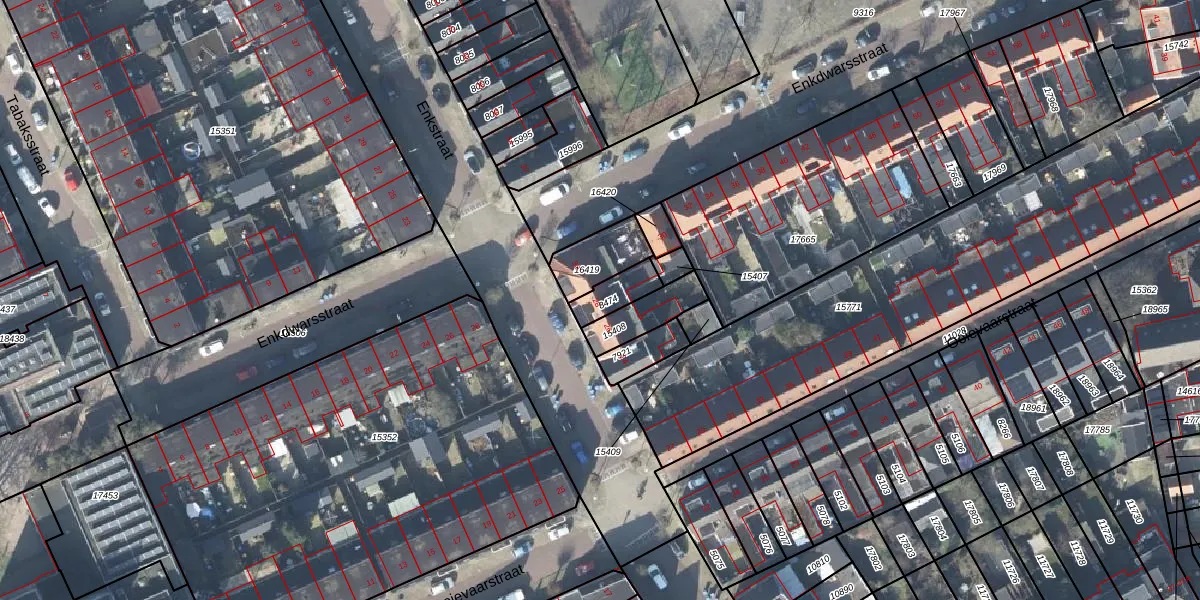 Het perceel waarop Enkstraat 28 staat heeft een oppervlakte van 75 m². Dit is een klein perceel. De perceeloppervlakte wordt geregistreerd door het Kadaster. Gedetailleerde informatie over de maten van dit perceel kunt u vinden in het rapport Kadastrale kaart met maatvoering van Enkstraat 28.
