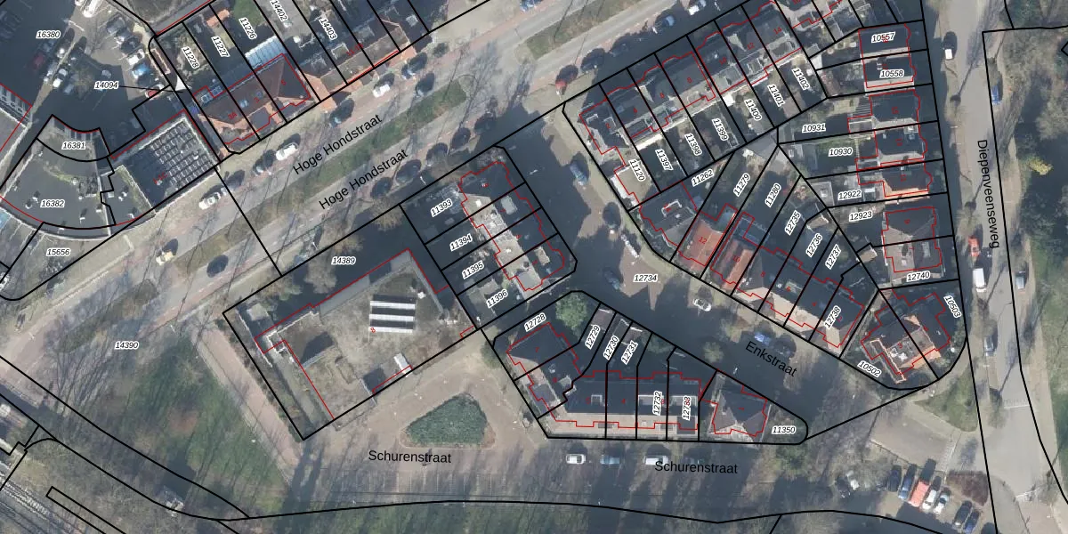 Het perceel waarop Enkstraat 3 staat heeft een oppervlakte van 170 m². Dit is een middelgroot perceel. De perceeloppervlakte wordt geregistreerd door het Kadaster. Gedetailleerde informatie over de maten van dit perceel kunt u vinden in het rapport Kadastrale kaart met maatvoering van Enkstraat 3.