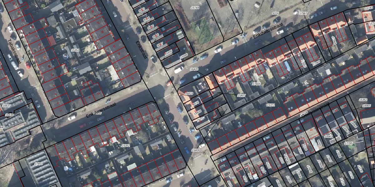 Enkstraat 30 is gelegen op kadastraal perceel DVT00B16419. Deze kadastrale aanduiding is uniek en wordt gebruikt door het Kadaster om eigendomsrechten en andere zakelijke rechten vast te leggen. Het perceel maakt onderdeel uit van de kadastrale gemeente Deventer.