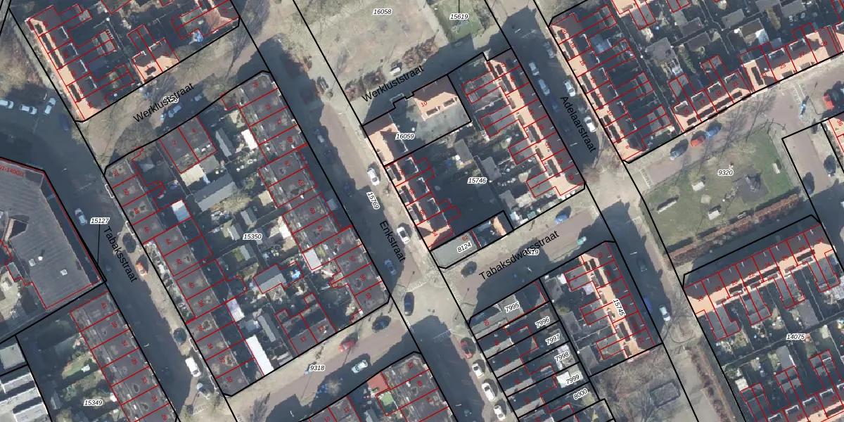 Het perceel waarop Enkstraat 66 staat heeft een oppervlakte van 1190 m². Dit is een zeer groot perceel. De perceeloppervlakte wordt geregistreerd door het Kadaster. Gedetailleerde informatie over de maten van dit perceel kunt u vinden in het rapport Kadastrale kaart met maatvoering van Enkstraat 66.