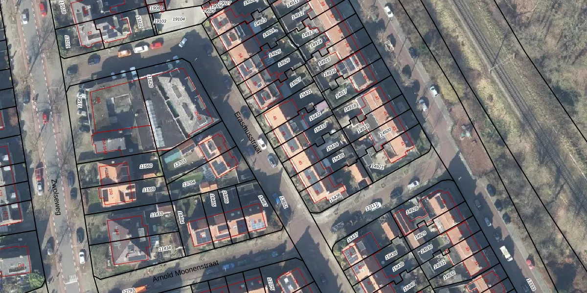 Erasmusstraat 42 is gelegen op kadastraal perceel DVT00B15433. Deze kadastrale aanduiding is uniek en wordt gebruikt door het Kadaster om eigendomsrechten en andere zakelijke rechten vast te leggen. Het perceel maakt onderdeel uit van de kadastrale gemeente Deventer.