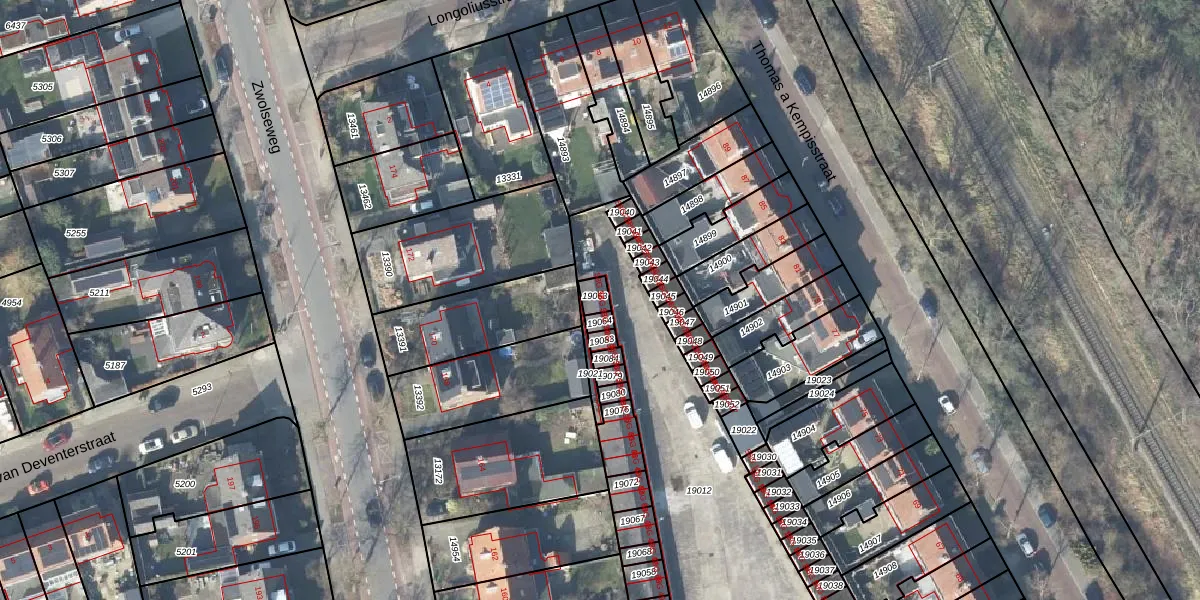 Het perceel waarop het adres ligt is DVT00-B-19063. De afkorting 'DVT00' staat voor kadastrale gemeente Deventer. Het perceel is 27 m² groot. Dat is kleiner dan de gemiddelde perceeloppervlakte in Deventer, dat op 1301,3 m² ligt. De grootste perceeloppervlakte in de kadastrale gemeente is 59,4 ha. De kleinste oppervlakte bedraagt 0 m². Er zijn 2 adressen aanwezig op het perceel. In de Basisregistratie Kadaster (BRK) werden de grenzen van het perceel geregistreerd op 24-08-2023.