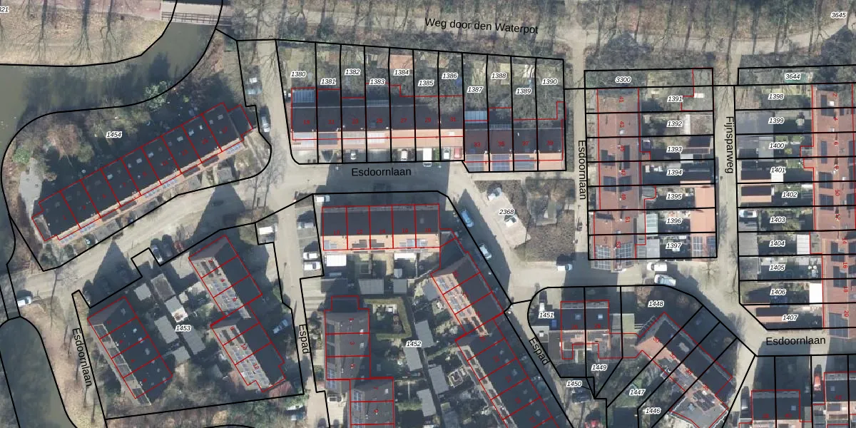 Het perceel waarop Esdoornlaan 18 staat heeft een oppervlakte van 3307 m². Dit is een zeer groot perceel. De perceeloppervlakte wordt geregistreerd door het Kadaster. Gedetailleerde informatie over de maten van dit perceel kunt u vinden in het rapport Kadastrale kaart met maatvoering van Esdoornlaan 18.