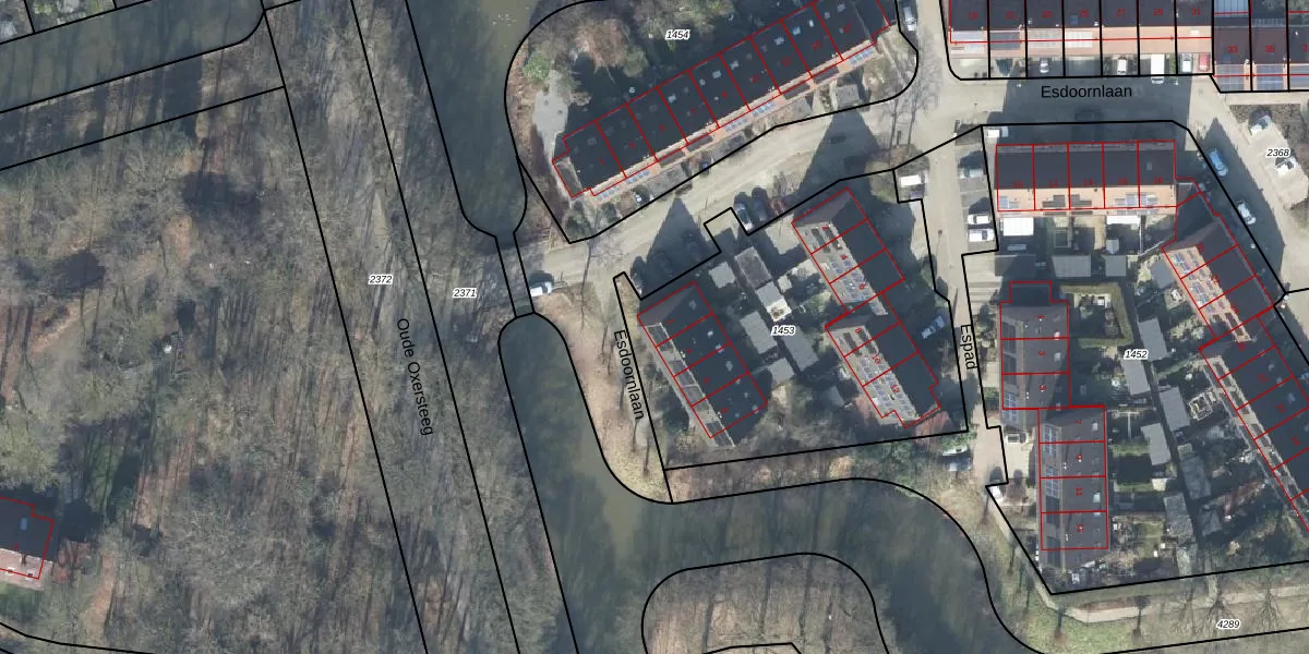 Het perceel waarop Esdoornlaan 2 staat heeft een oppervlakte van 1681 m². Dit is een zeer groot perceel. De perceeloppervlakte wordt geregistreerd door het Kadaster. Gedetailleerde informatie over de maten van dit perceel kunt u vinden in het rapport Kadastrale kaart met maatvoering van Esdoornlaan 2.