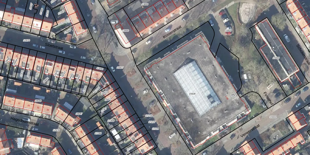 Het perceel waarop Finsehof 59 staat heeft een oppervlakte van 3688 m². Dit is een zeer groot perceel. De perceeloppervlakte wordt geregistreerd door het Kadaster. Gedetailleerde informatie over de maten van dit perceel kunt u vinden in het rapport Kadastrale kaart met maatvoering van Finsehof 59.