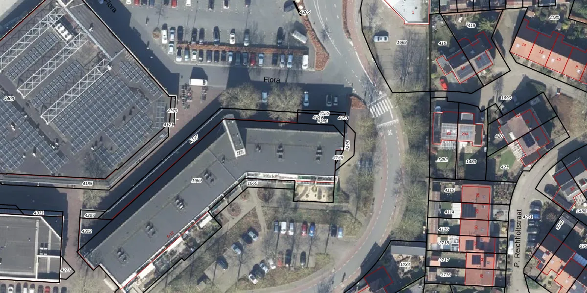 Het perceel waarop Flora 15 staat heeft een oppervlakte van 2290 m². Dit is een zeer groot perceel. De perceeloppervlakte wordt geregistreerd door het Kadaster. Gedetailleerde informatie over de maten van dit perceel kunt u vinden in het rapport Kadastrale kaart met maatvoering van Flora 15.