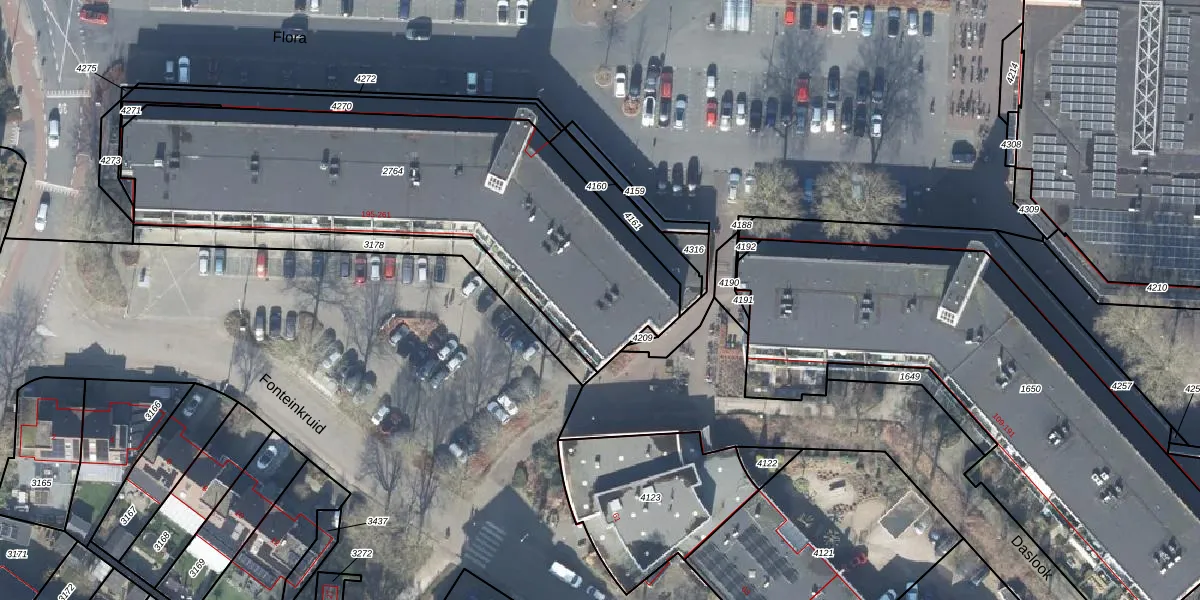 Het perceel waarop Flora 207 staat heeft een oppervlakte van 1952 m². Dit is een zeer groot perceel. De perceeloppervlakte wordt geregistreerd door het Kadaster. Gedetailleerde informatie over de maten van dit perceel kunt u vinden in het rapport Kadastrale kaart met maatvoering van Flora 207.