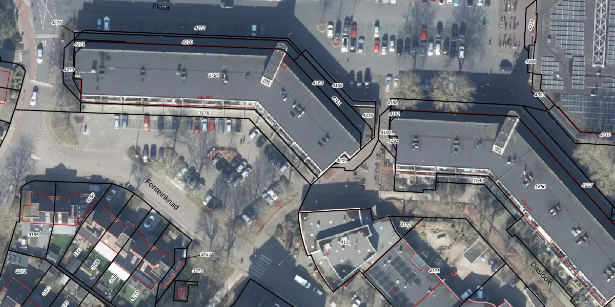 Het perceel waarop Flora 217 staat heeft een oppervlakte van 1952 m². Dit is een zeer groot perceel. De perceeloppervlakte wordt geregistreerd door het Kadaster. Gedetailleerde informatie over de maten van dit perceel kunt u vinden in het rapport Kadastrale kaart met maatvoering van Flora 217.