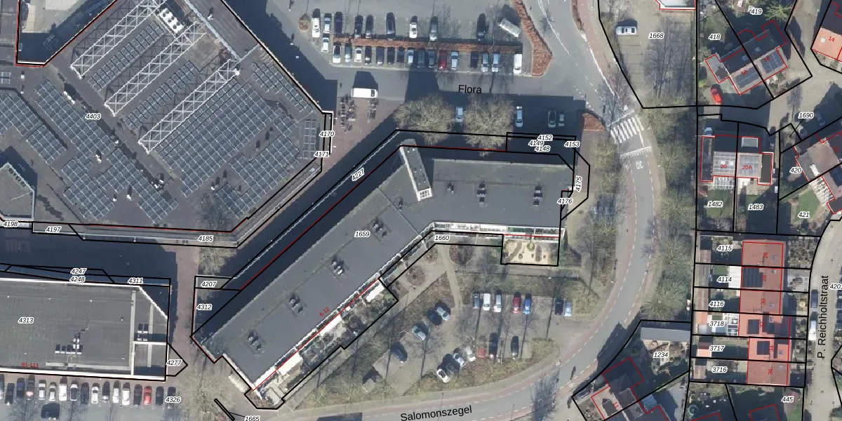 Het perceel waarop Flora 31 staat heeft een oppervlakte van 2290 m². Dit is een zeer groot perceel. De perceeloppervlakte wordt geregistreerd door het Kadaster. Gedetailleerde informatie over de maten van dit perceel kunt u vinden in het rapport Kadastrale kaart met maatvoering van Flora 31.