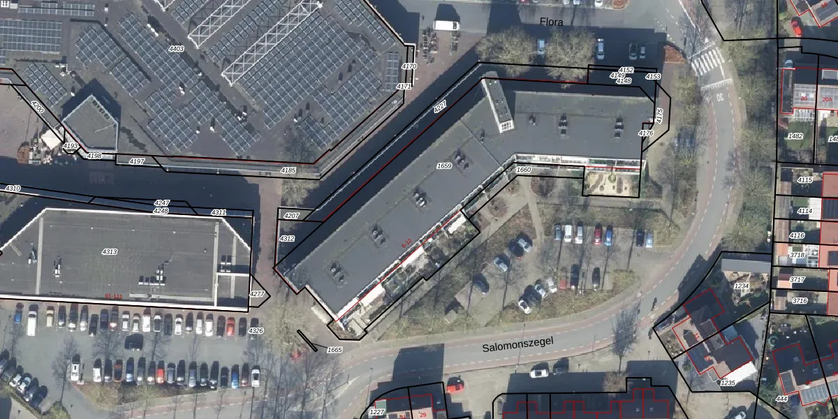 Het perceel waarop Flora 39 staat heeft een oppervlakte van 2290 m². Dit is een zeer groot perceel. De perceeloppervlakte wordt geregistreerd door het Kadaster. Gedetailleerde informatie over de maten van dit perceel kunt u vinden in het rapport Kadastrale kaart met maatvoering van Flora 39.