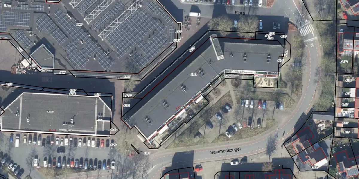 Het perceel waarop Flora 57 staat heeft een oppervlakte van 2290 m². Dit is een zeer groot perceel. De perceeloppervlakte wordt geregistreerd door het Kadaster. Gedetailleerde informatie over de maten van dit perceel kunt u vinden in het rapport Kadastrale kaart met maatvoering van Flora 57.