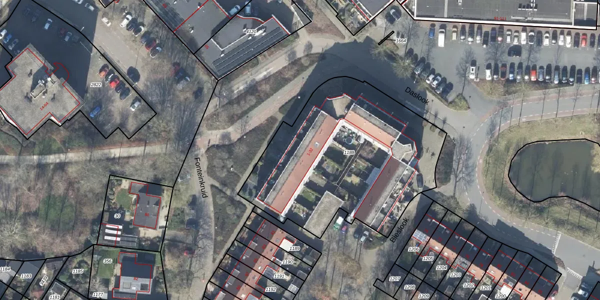 Het perceel waarop Fonteinkruid 73 staat heeft een oppervlakte van 2309 m². Dit is een zeer groot perceel. De perceeloppervlakte wordt geregistreerd door het Kadaster. Gedetailleerde informatie over de maten van dit perceel kunt u vinden in het rapport Kadastrale kaart met maatvoering van Fonteinkruid 73.