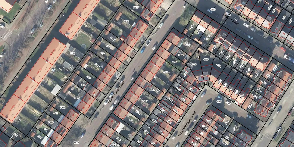 Het perceel waarop Frans Halsstraat 37 staat heeft een oppervlakte van 405 m². Dit is een groot perceel. De perceeloppervlakte wordt geregistreerd door het Kadaster. Gedetailleerde informatie over de maten van dit perceel kunt u vinden in het rapport Kadastrale kaart met maatvoering van Frans Halsstraat 37.