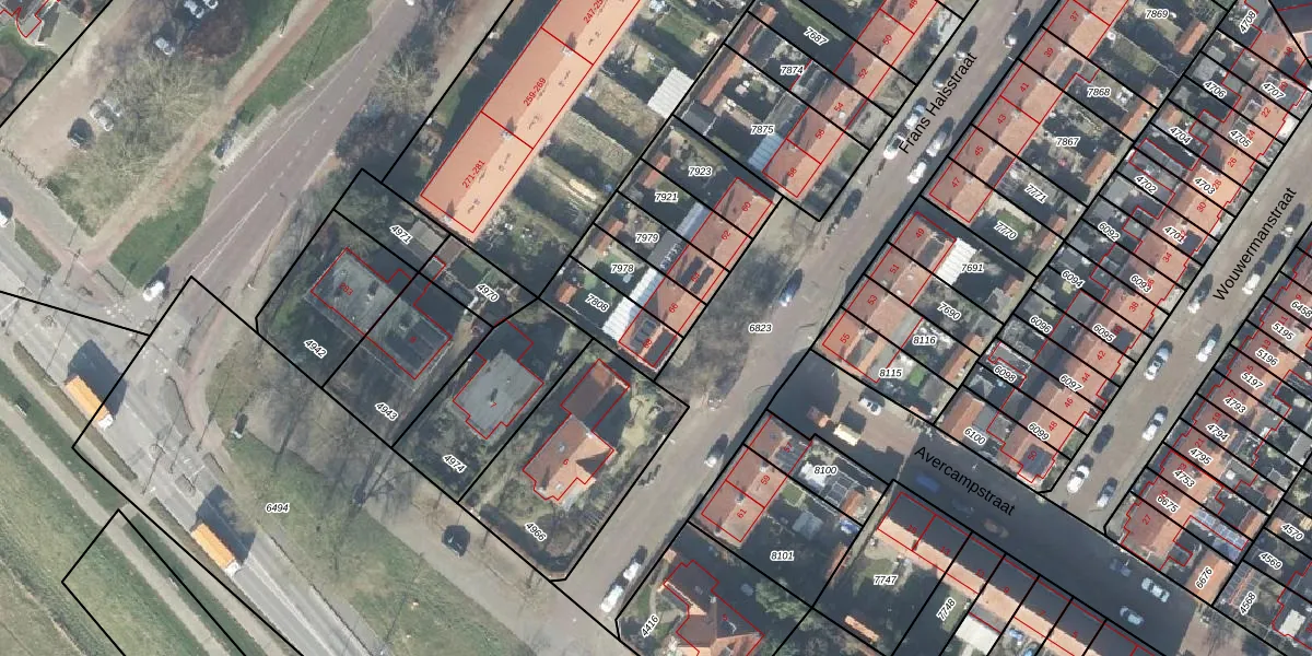 Gebruik de zoekbalk of klik op een perceel voor informatie over de adressen binnen dit perceel.