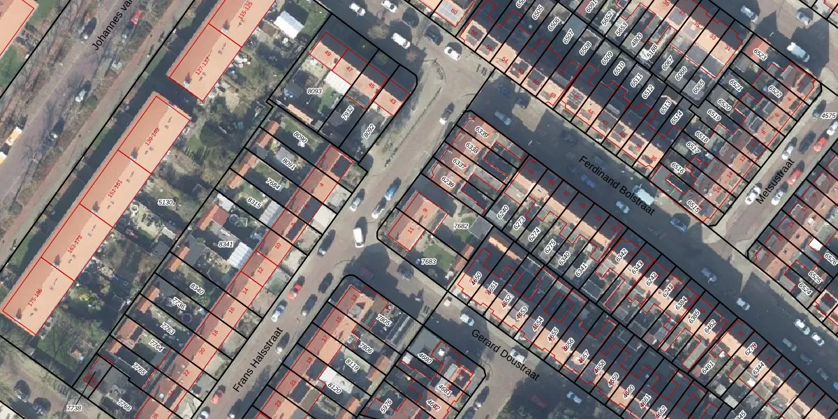 Het perceel waarop Frans Halsstraat 9 staat heeft een oppervlakte van 223 m². Dit is een middelgroot perceel. De perceeloppervlakte wordt geregistreerd door het Kadaster. Gedetailleerde informatie over de maten van dit perceel kunt u vinden in het rapport Kadastrale kaart met maatvoering van Frans Halsstraat 9.