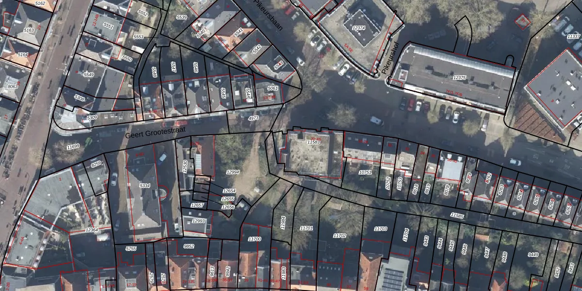Het perceel waarop Geert Grootestraat 24 staat heeft een oppervlakte van 355 m². Dit is een groot perceel. De perceeloppervlakte wordt geregistreerd door het Kadaster. Gedetailleerde informatie over de maten van dit perceel kunt u vinden in het rapport Kadastrale kaart met maatvoering van Geert Grootestraat 24.