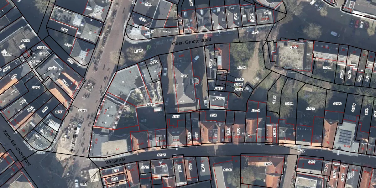 Het perceel waarop Geert Grootestraat 8-D staat heeft een oppervlakte van 798 m². Dit is een groot perceel. De perceeloppervlakte wordt geregistreerd door het Kadaster. Gedetailleerde informatie over de maten van dit perceel kunt u vinden in het rapport Kadastrale kaart met maatvoering van Geert Grootestraat 8-D.