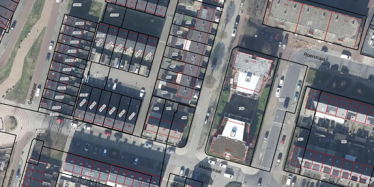 Gebruik de zoekbalk of klik op een perceel voor informatie over de adressen binnen dit perceel.