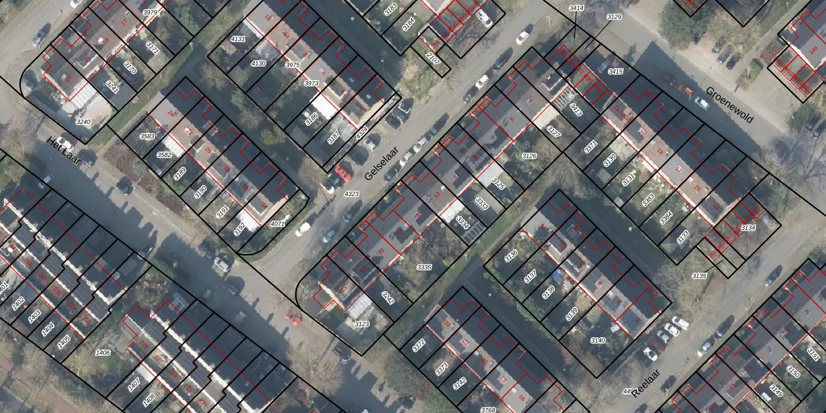 Het perceel waarop Gelselaar 15 staat heeft een oppervlakte van 448 m². Dit is een groot perceel. De perceeloppervlakte wordt geregistreerd door het Kadaster. Gedetailleerde informatie over de maten van dit perceel kunt u vinden in het rapport Kadastrale kaart met maatvoering van Gelselaar 15.