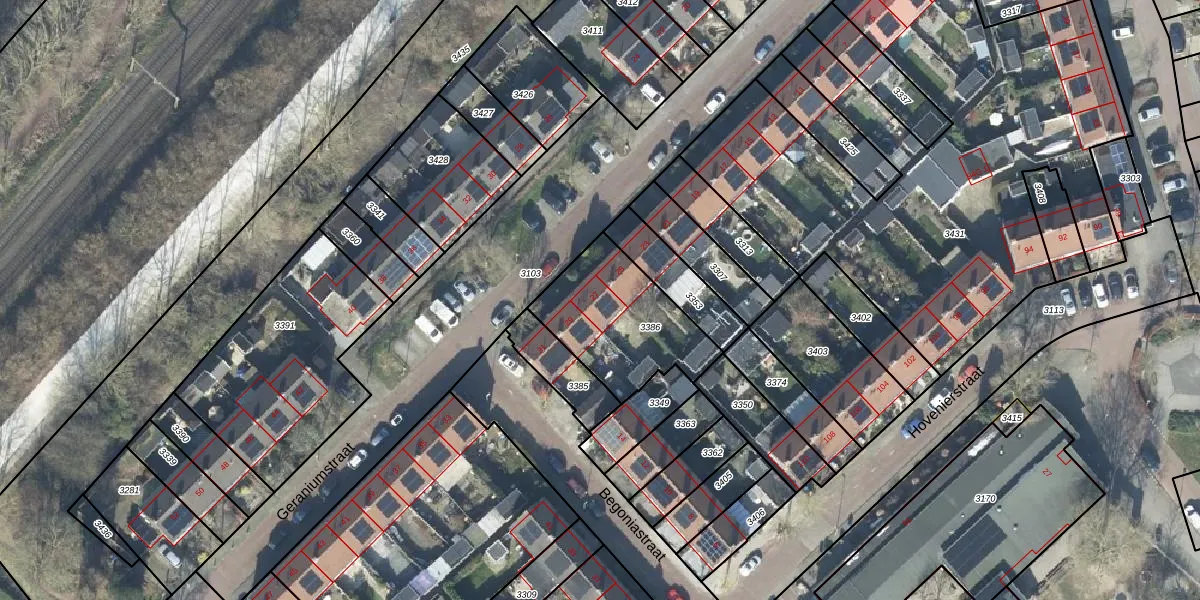 Het perceel waarop Geraniumstraat 27 staat heeft een oppervlakte van 450 m². Dit is een groot perceel. De perceeloppervlakte wordt geregistreerd door het Kadaster. Gedetailleerde informatie over de maten van dit perceel kunt u vinden in het rapport Kadastrale kaart met maatvoering van Geraniumstraat 27.