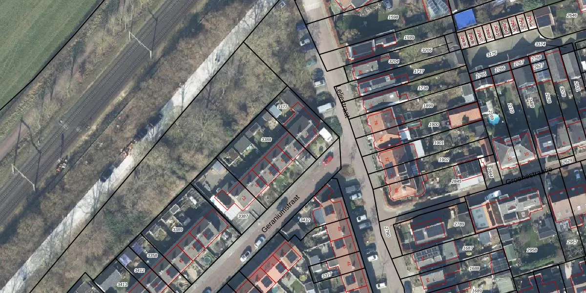 Het perceel waarop Geraniumstraat 4 staat heeft een oppervlakte van 590 m². Dit is een groot perceel. De perceeloppervlakte wordt geregistreerd door het Kadaster. Gedetailleerde informatie over de maten van dit perceel kunt u vinden in het rapport Kadastrale kaart met maatvoering van Geraniumstraat 4.